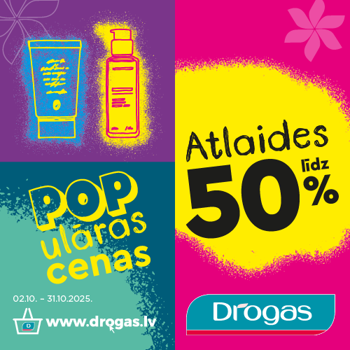 A must-see – popular prices at Drogas stores with discounts of up to 50 percent! More information at www.drogas.lv
