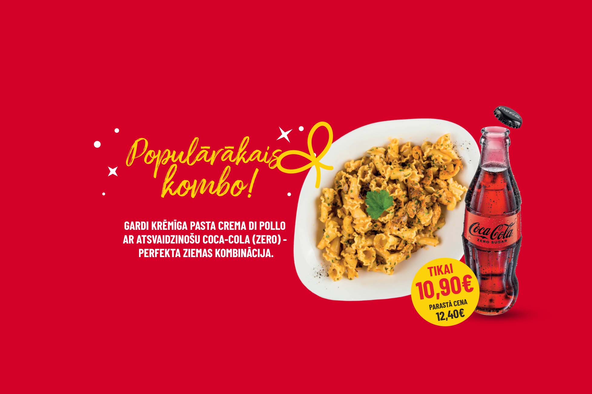 🍝 Pasta Caprese – pasta with red pesto, mini mozzarella balls, basil, and pine nuts.