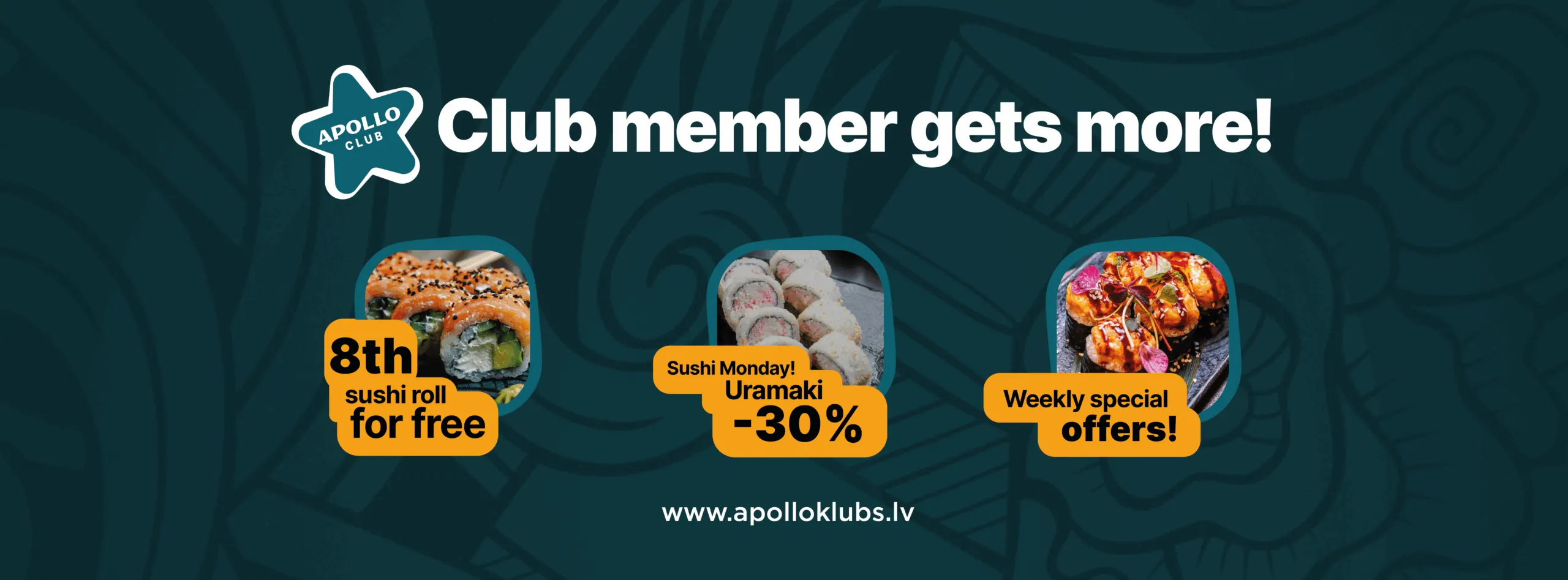 Apollo Club offers: Every Monday all Uramaki -30%, every 8th sushi roll FREE.