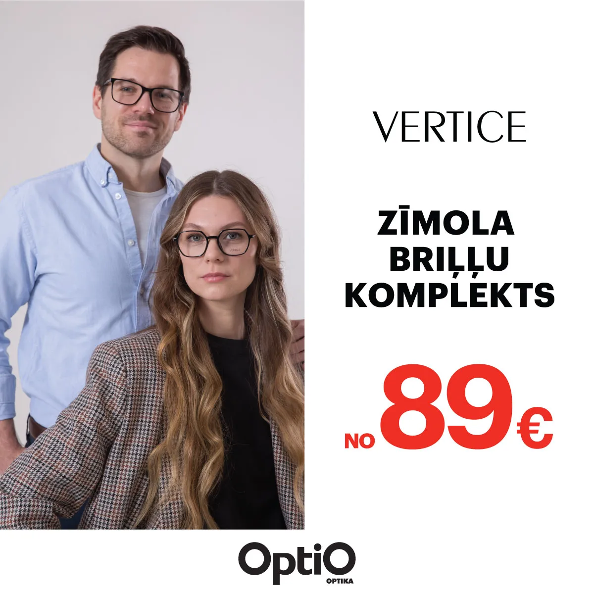 Cenā 89€ iekļauts Vertice zīmola ietvars, 2 augstas kvalitātes briļļu lēcas 1.5 (sph.+/-4.00, cyl.+2.00), briļļu pielāgošana. Akcijas un atlaides nesummējas. Plašāka informācija veikalā pie konsultanta. Spēkā 09.02. – 31.03.2026.