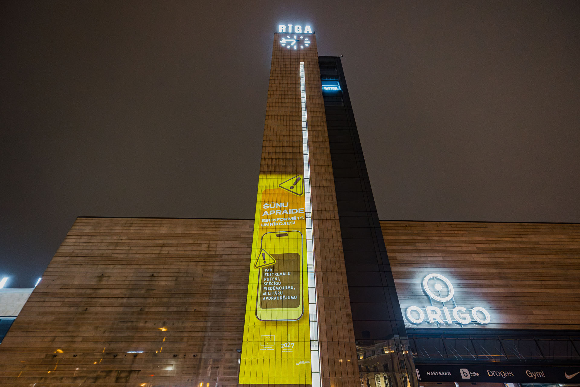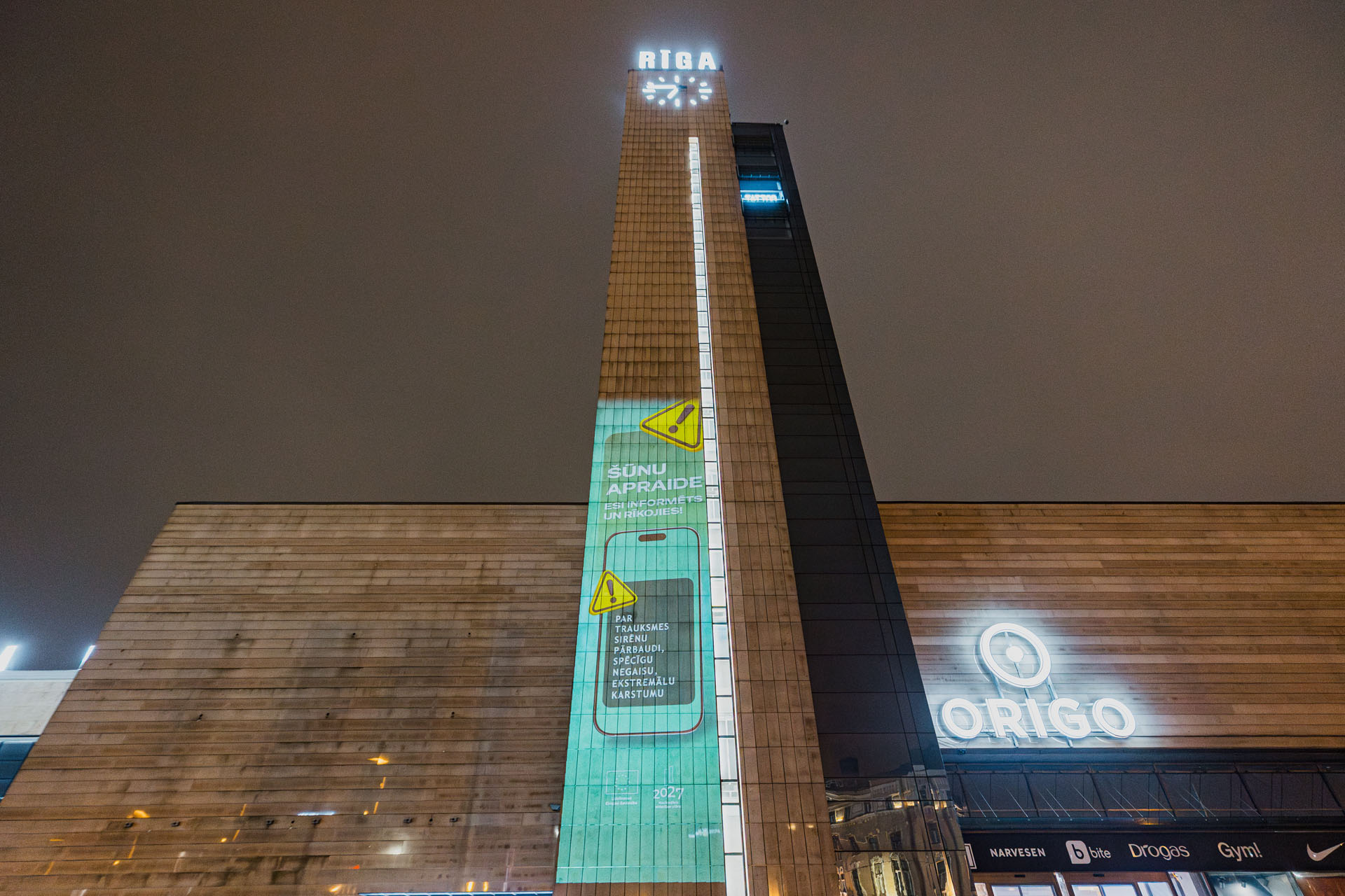 Ar gaismas objektu uz Stacijas pulksteņa torņa Iekšlietu ministrija un Valsts ugunsdzēsības un glābšanas dienests uzsāk kampaņu “Šūnu apraide – esi informēts un rīkojies!”