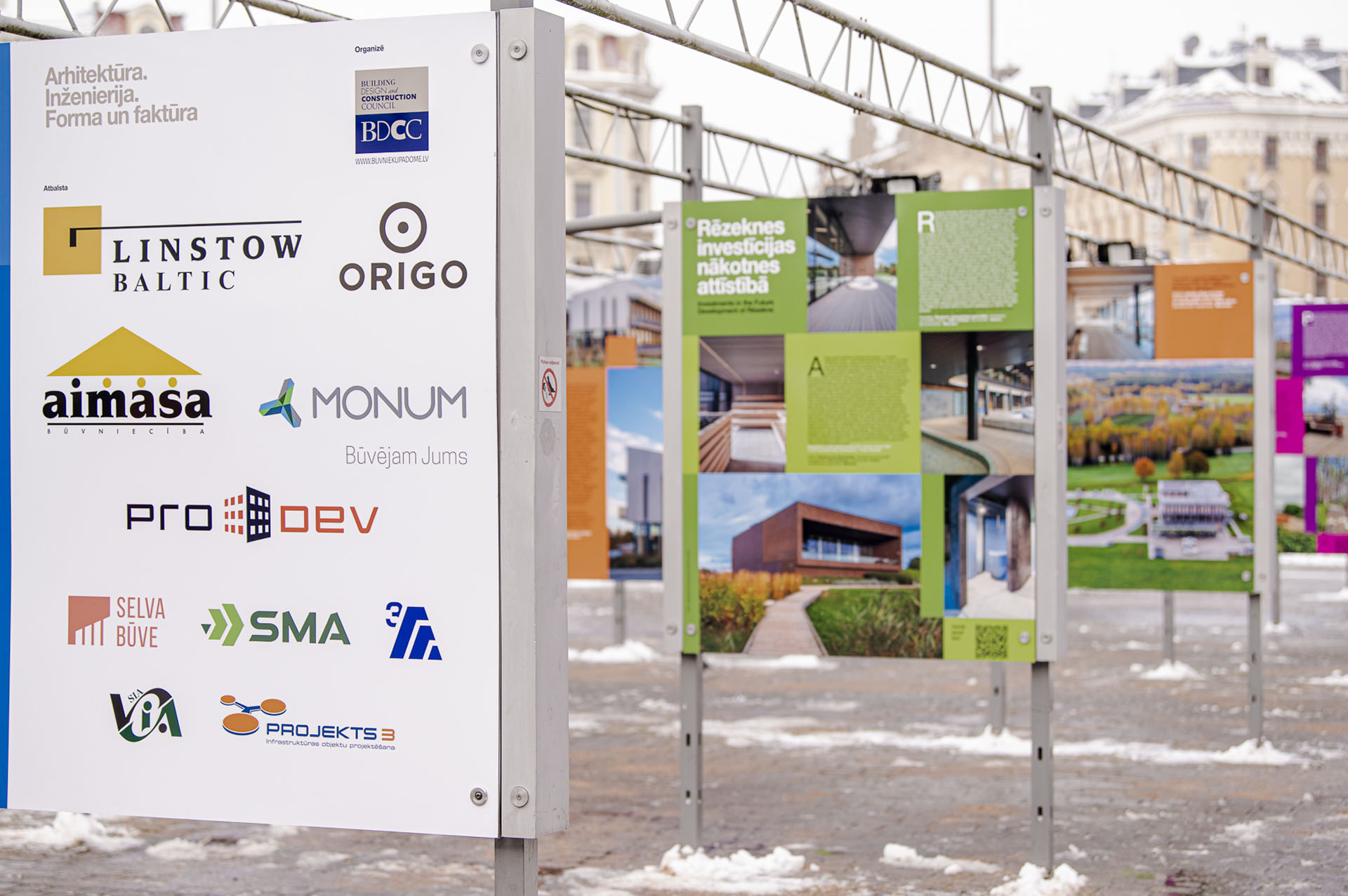 Izstādes atbalstītāji Aimasa, Pro Dev, MONUM, Selva Būve, SMA, 3A, VIA, Projekts 3.