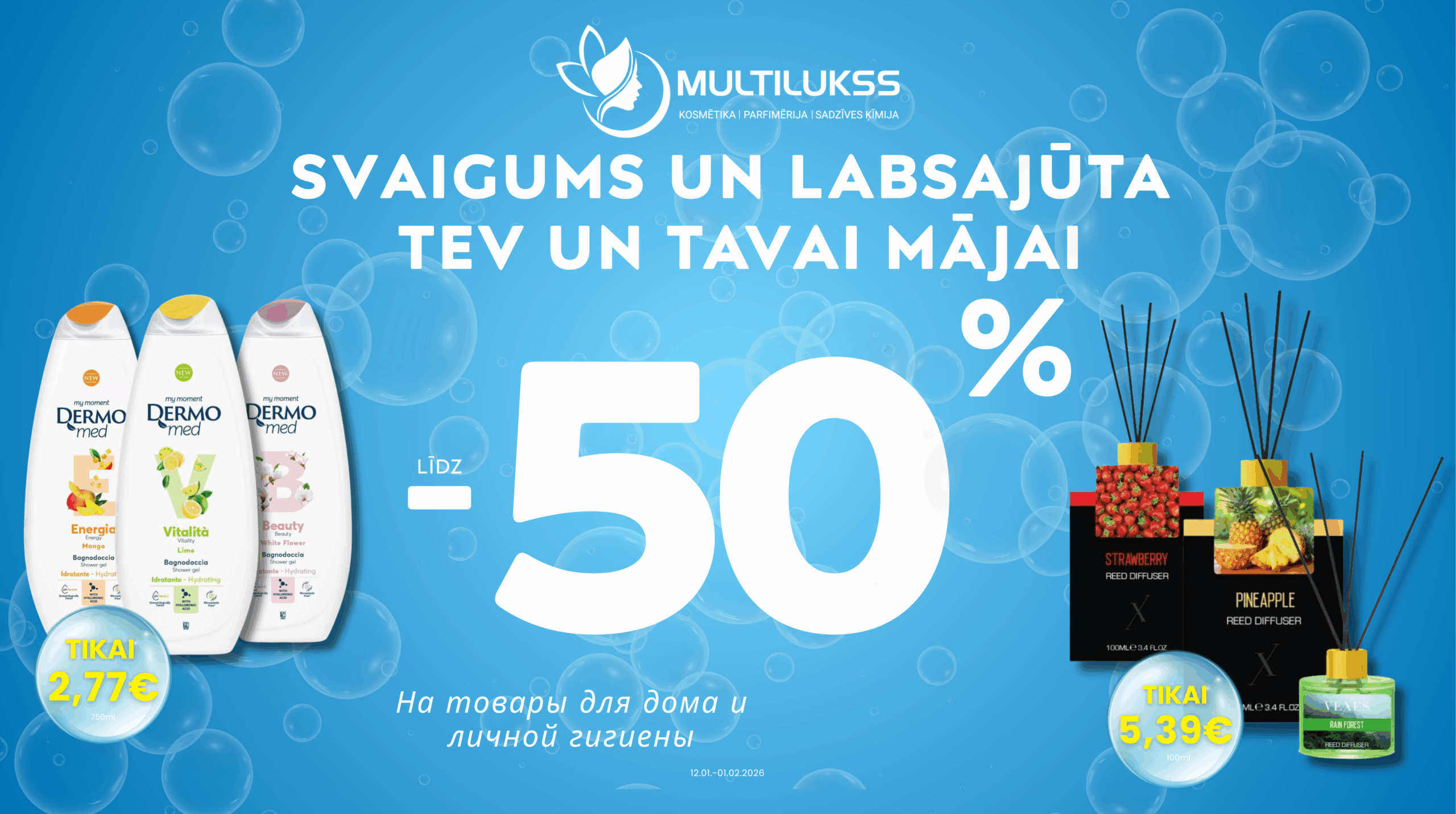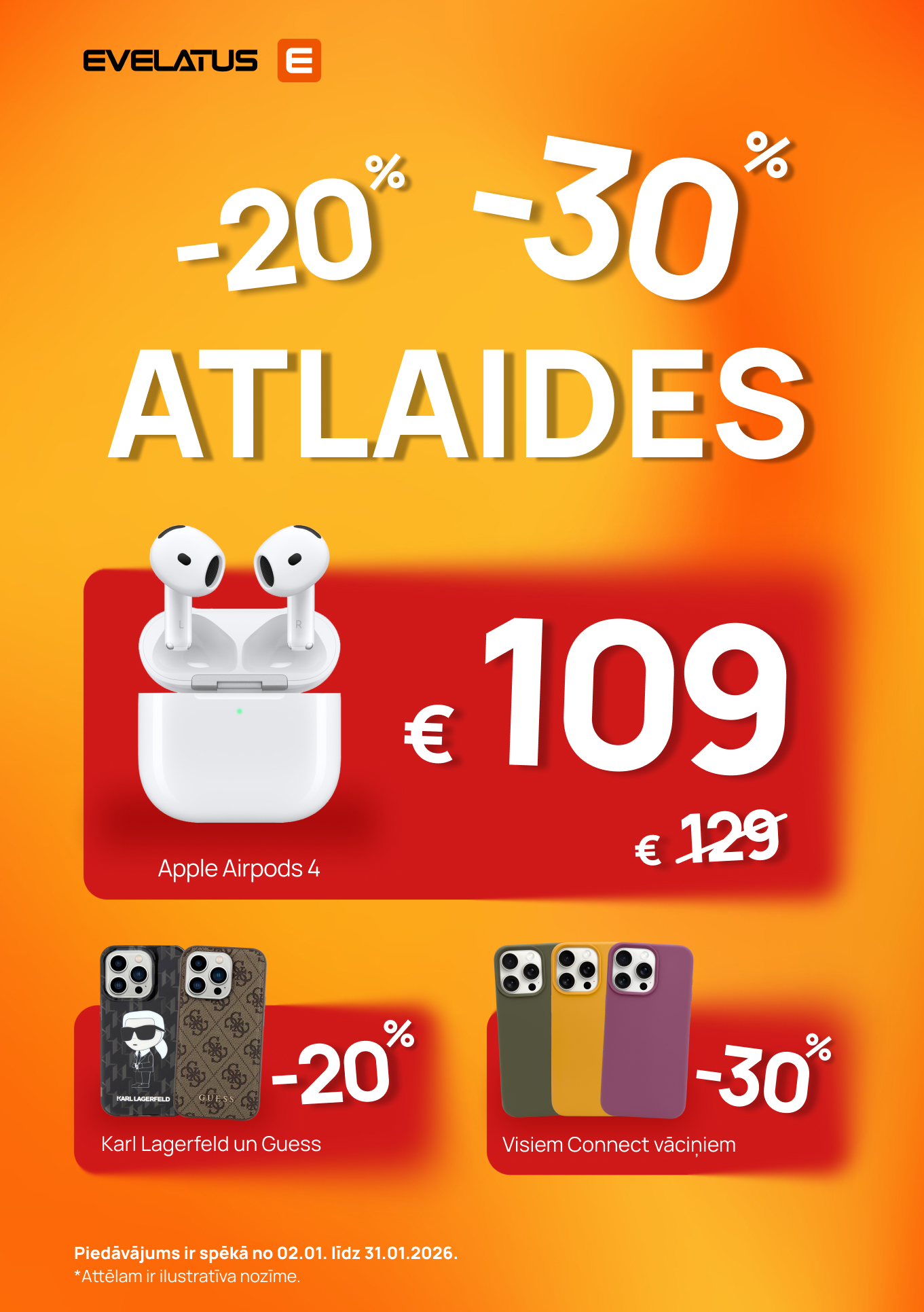 Atlaide ietvariem spēkā, pasūtot pilnu briļļu komplektu (ietvars, lēcas, pielāgošana). Atlaide neattiecas uz jaunās kolekcijas ietvariem un saulesbrillēm. Akcijas un atlaides nesummējas, tai skaitā arī ar klientu kartes atlaidēm. Akcija spēkā: 01.12.2025.–31.01.2026. Plašāka informācija veikalos pie konsultanta.