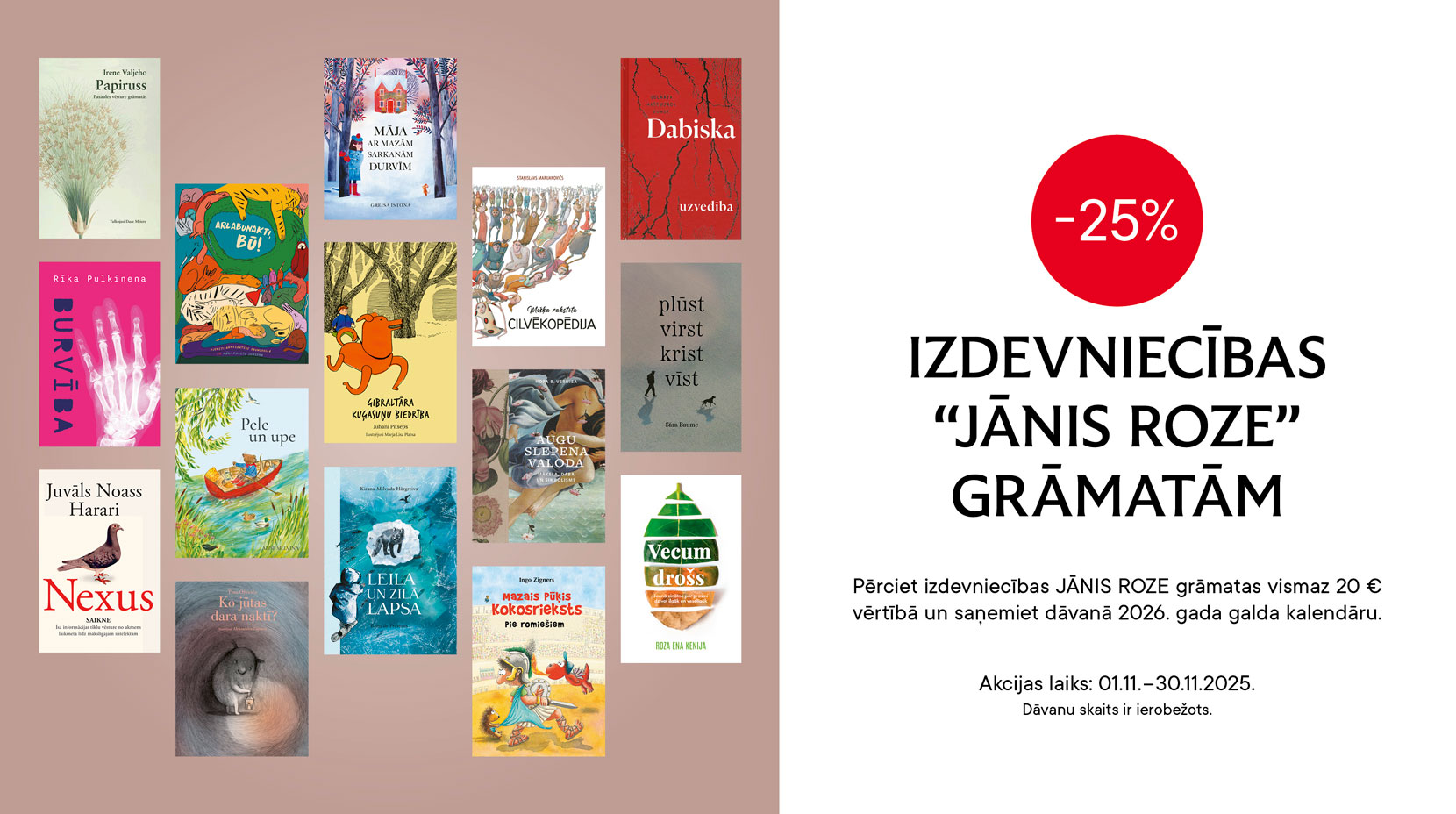Книжный магазин JĀNIS ROZE предлагает книги на латышском, русском и английском языках, канцелярские, офисные товары и товары для рукоделия, а также игрушки. Широкий спектр книг включает в себя художественную литературу, книги для детей, справочную и отраслевую литературу, словари, карты, путеводители и учебники.