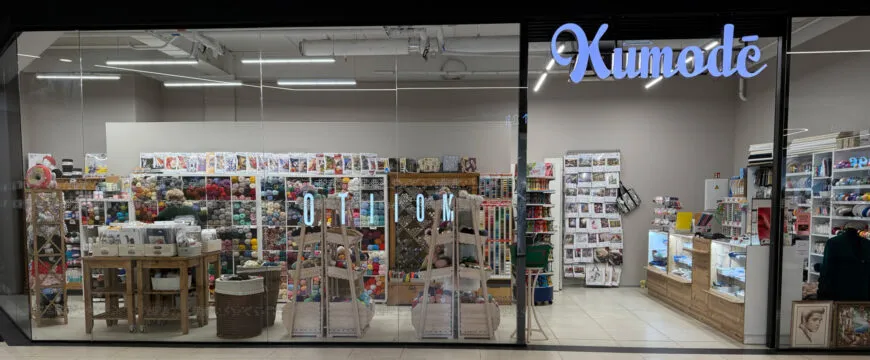 Швейные принадлежности, товары для вязания спицами и крючком, нитки, пуговицы, вышивка и аксессуары, а также все необходимое для изготовления украшений и других рукоделий.