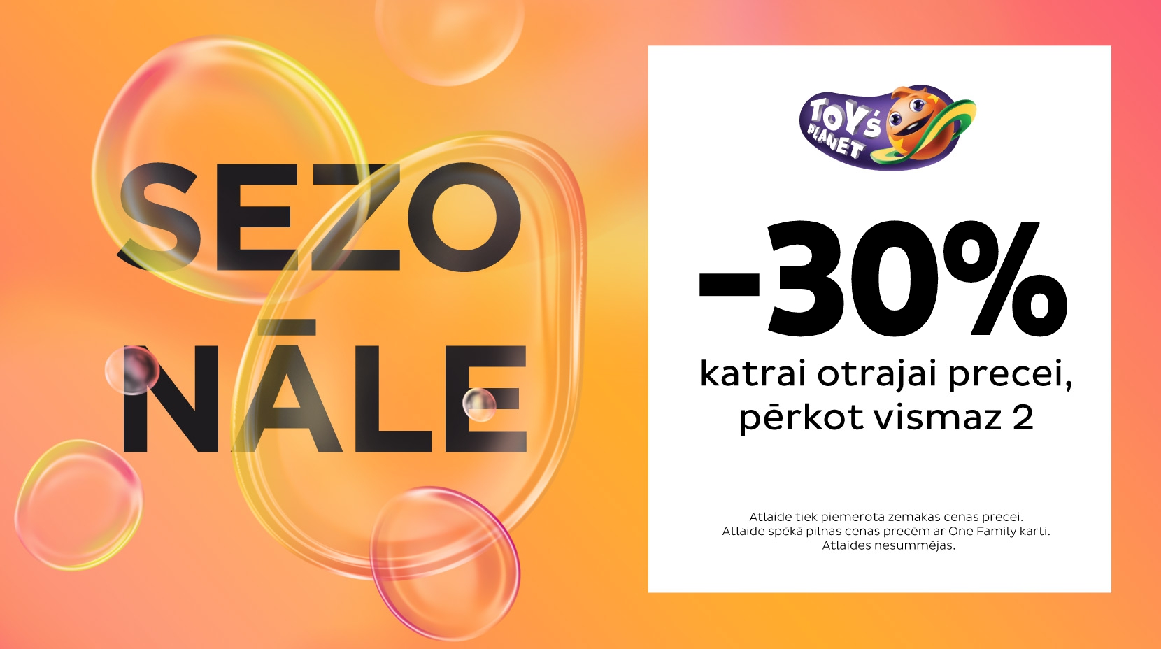 30% atlaide pirkumam, pērkot vismaz 2 preces