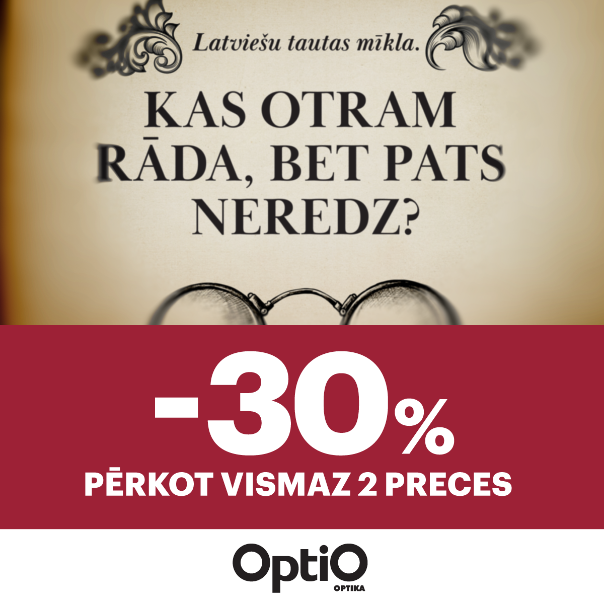 Akcija spēkā, pērkot jebkuras 2 preces – pilnu briļļu komplektu (ietvars, lēcas, pielāgošana), briļļu aksesuāru, kontaktlēcu iepakojumu, saulesbrilles vai citas preces. Akcijas un atlaides nesummējas, tai skaitā arī ar klientu kartes atlaidēm. Akcija neattiecas uz pakalpojumiem un dāvanu kartēm.