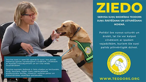 “Ziedojumus vācam, lai uzturētu un ārstētu servisa suņus, kuri ikdienā kalpo cilvēkiem ar invaliditāti, tādā veidā palīdzot cilvēkiem ar invaliditāti pilnvērtīgāk dzīvot, palīdzot orientēties cilvēkiem ar redzes invaliditāti un paceļot lietas, ieslēdzot gaismu, palīdzot noģērbties un citas lietas cilvēkiem ar kustību invaliditāti. Ticu, ka kopā ar t/c “Origo” apmeklētājiem mēs spēsim palīdzēt gan dzīvniekiem, gan tādējādi arī cilvēkiem, kuriem servisa suņu klātbūtne ir neatņemama dzīves sastāvdaļa.”
